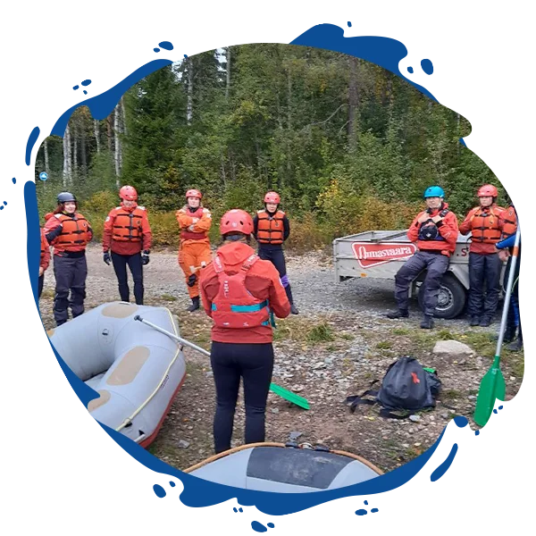 - pelastus- ja turvallisuustaidot (koskessa uiminen, heittoliinan käyttö, lautan kääntäminen ja lauttaan takaisin kiipeäminen)